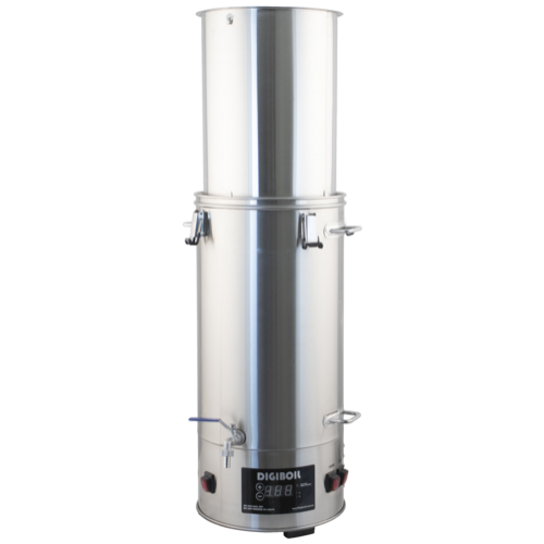 With the included Mash Upgrade Kit, you can easily use the DigiBoil as an electric mash tun all-in-one brewing sytem. It's perfect for mashing 5-gallon extract batches, preheating strike or sparge water, boiling your beer, and with the addition of a still top lid and condenser, it can be used for home distilling. You will want to add a wort chiller to make this complete.