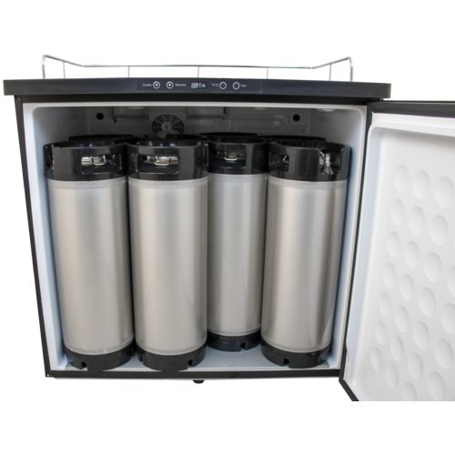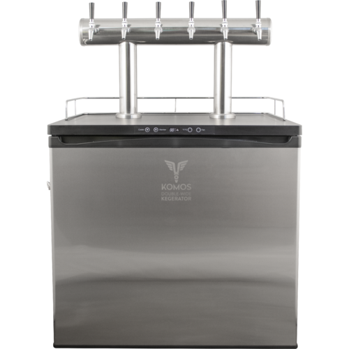 The KOMOS Double-Wide Kegerator has the largest interior capacity of any home kegerator on the market. With an extra wide design, this unit can hold up to eight 5-gallon Slimline Torpedo Kegs or Ball Lock Corny Kegs. These units were designed by homebrewers for homebrewers. They're built for long lasting service, with high quality stainless steel door and keg floor, and rolling casters. Whether you need to dial in the perfect serving temperature for your beer, or you're looking to hold a 64° fermentation in hot weather, this kegerator has you covered with the integrated extended range thermostat, capable of holding temperatures from 26 - 82°F. Comes with robust KOMOS CO2 regulator included! The KOMOS Kegerator has a premium feature set for an amazing price, and is a perfect companion to any brewer or beer connoisseur.